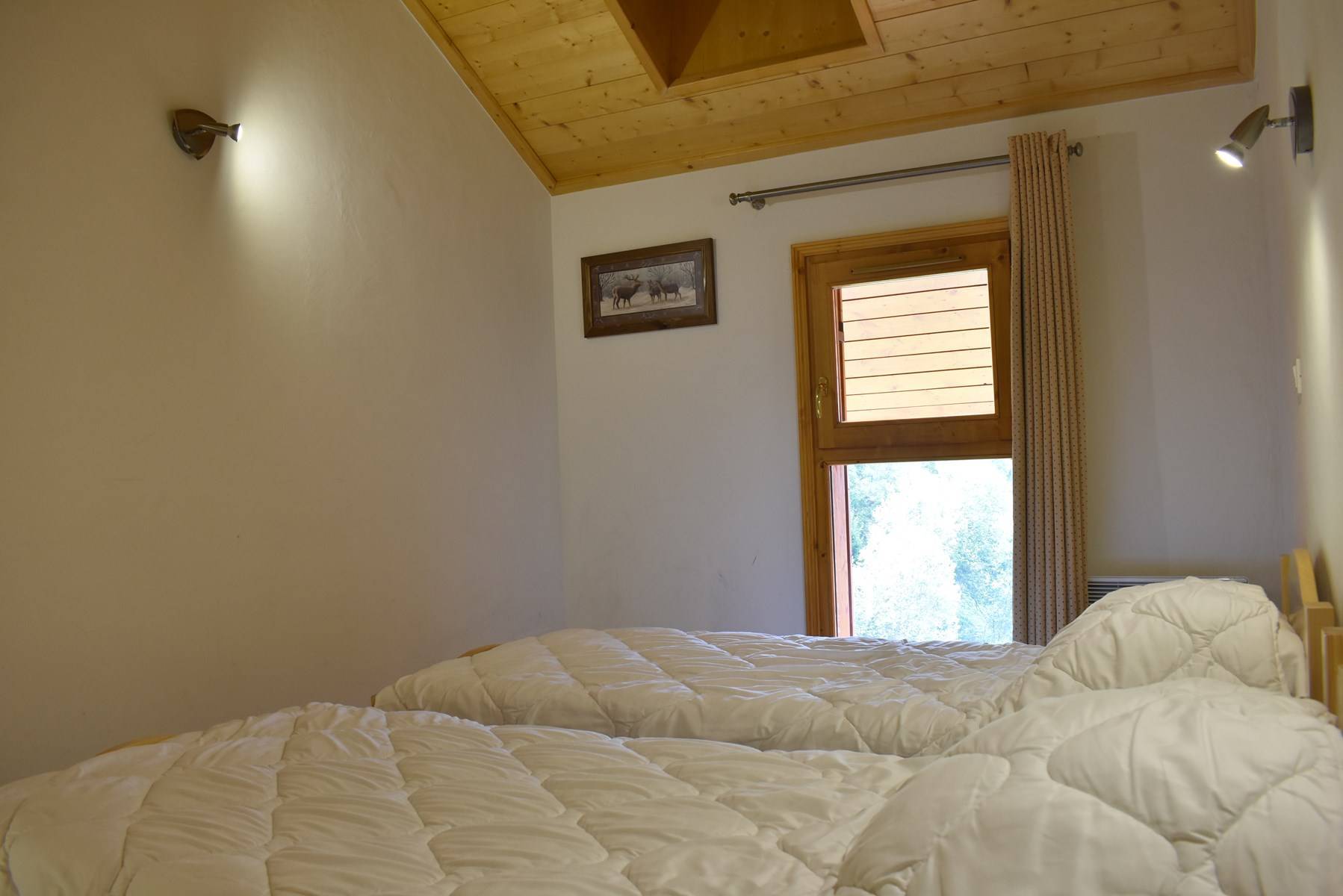 Im Obergeschoss stehen Ihnen 2 Schlafzimmer mit 2 Einzelbetten Richtung Süden und 1 Badezimmer mit WC zur Verfügung.